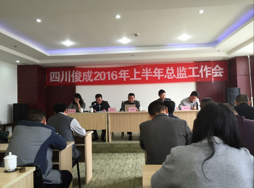 2016年4月9日四川俊成工程項目管理咨詢有限公司在成都市龍?zhí)豆I(yè)園區(qū)維斯頓酒店召開了2016年上半年總監(jiān)工作會議。參會人員包括:公司領導、各項目總監(jiān)及總監(jiān)代表、公司各部門負責人。