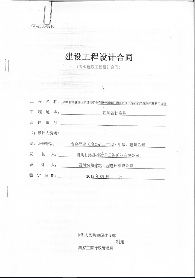 四川甘洛縣株冶樂日溝礦業有限公司樂日溝Ⅱ礦區鉛鋅礦礦產資源開發利用方案