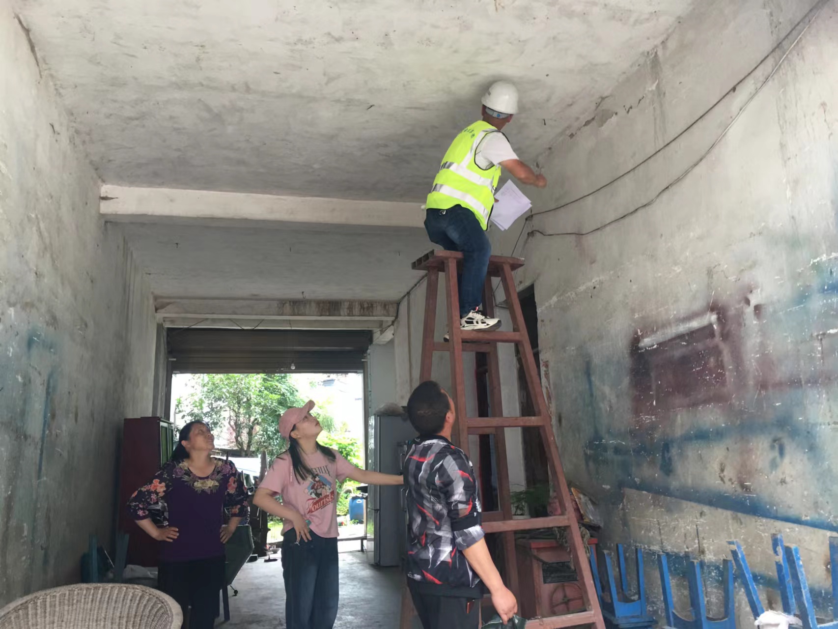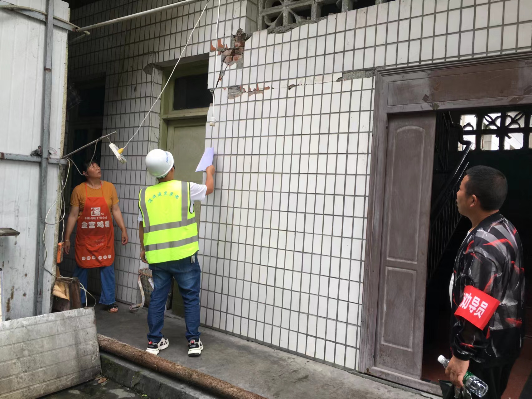 我司災(zāi)后支援團隊據(jù)政府提供的500多戶住戶名單,逐一進行場地環(huán)境安全、地基基礎(chǔ)安全、結(jié)構(gòu)部分安全、非結(jié)構(gòu)部分安全等破壞情況應(yīng)急評估工作。震后評估工作量大,住戶多,時間緊,支援團隊盡量壓縮、減少用餐和休息時間,爭取更多時間來查看并評估每棟房屋受損情況。支援團隊在評估房屋的同時,還為當?shù)厝罕娖占暗卣鹩嘘P(guān)知識,安撫百姓情緒,為后續(xù)恢復(fù)重建和房屋修繕加固奠定堅實基礎(chǔ)。